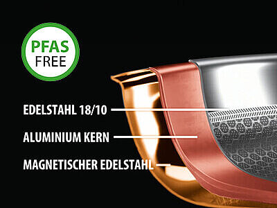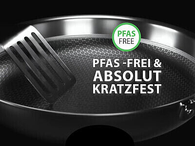 Die innovative ELODUR® Antihaftversiegelung ist PFAS-frei, kratzfest und langlebig – für fettarmes Braten ohne Kompromisse. Schluss mit Ankleben, Schluss mit Chemie. Dafür mehr Genuss und Nachhaltigkeit.
